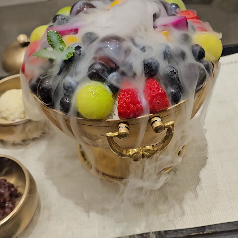 빙수 디저트도 눈길을 사로잡아 주문할 가치가 있습니다.