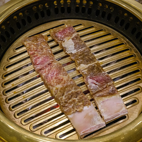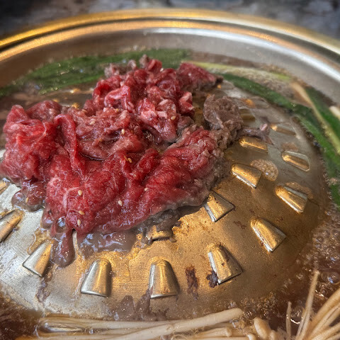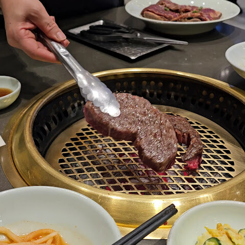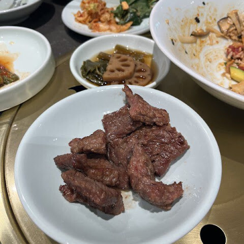 대부분의 현지인들은 고기 요리 한두 가지를 주문하고 고급 찌개와 국수 요리를 곁들이는 것 같지만, 저희는 한우에 모든 것을 걸었습니다. 갈비, 안심, 안창살 모두 훌륭하지만, 달콤한 불고기는 피하는 것을 추천합니다.