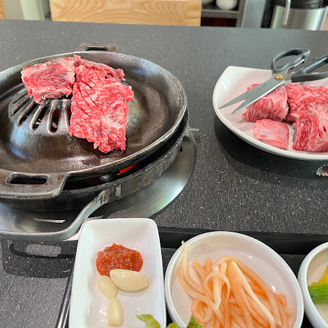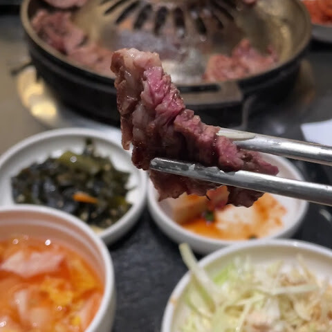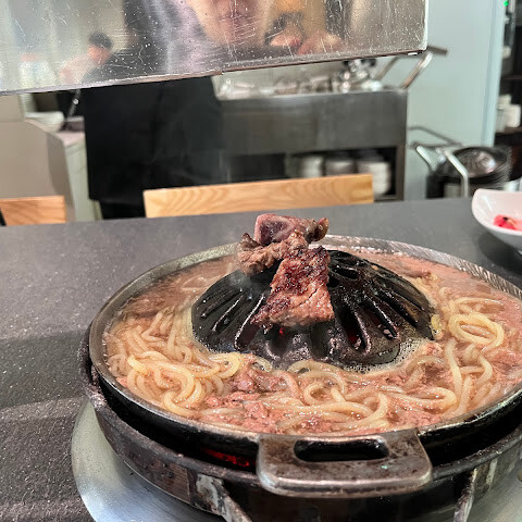 양념갈비, 불고기, 감자국수를 먹어봤는데, 모두 훌륭하고 아주 부드럽고 맛있었습니다. 반찬도 모두 훌륭했고 서비스도 아주 좋았습니다!