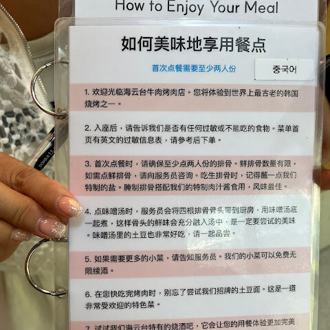 줄이 긴 유명한 식당이에요. 그릴 서비스도 제공해요. 고기는 맛있지만 양에 비해 좀 비싼 편이에요. 아내는 광안리에 있는 얀양지아를 더 좋아해요.