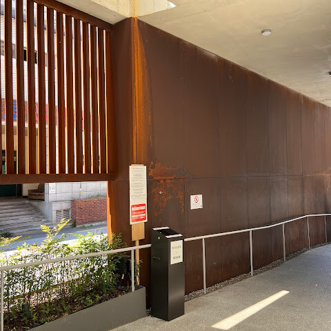 한우를 먹으려고 밖에 긴 줄이 늘어서 있었습니다. 건물 전체가 아주 인상적이었습니다. 1시 30분이 지나도 여전히 많은 사람들이 기다리고 있었습니다. 밖에는 좌석 예약(이메일로 등록)을 위한 캐치테이블이 있었습니다. 올해는 몇 명이 왔는지, 얼마나 기다려야 하는지 알려주는 기계였습니다. 기다리는 동안 마실 물도 밖에 있었습니다.