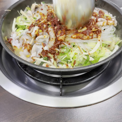 이 식당 꼭 한번 가보세요! 정통 매콤한 문어 볶음 전골입니다.