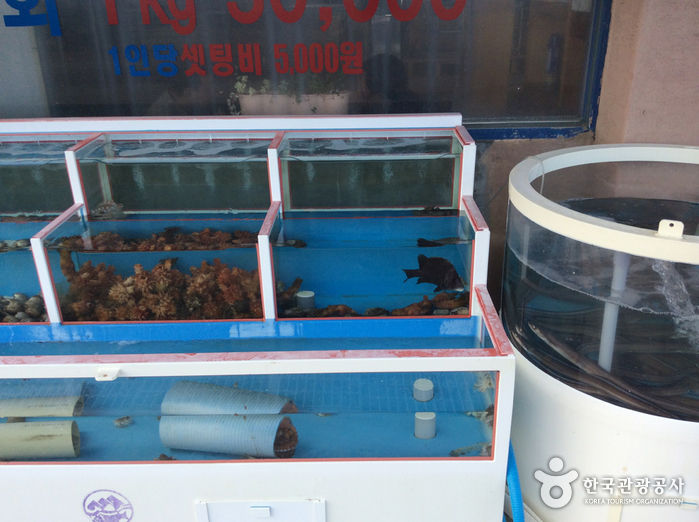 청청한 해역 등량만과 율포해수욕장이 한눈에 내려다 보이는 위치에 있으며, 막 잡은 어류로 만든 회와, 끓여먹는 탕맛은 해변에서만 느낄 수 있는 특미이다.