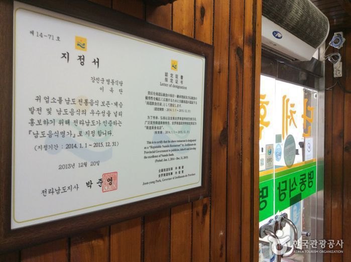 일단 상을 받아놓고 보면 산, 들, 바다를 모두 갖춘 강진의 자연적 특성이 식탁에 고스란히 드러난다. 생선회, 전복회, 대합탕, 장어구이 등 바다의 먹을거리와 떡갈비, 육회, 강진 특산 표고버섯튀김까지.. 그야말로 산해진미가 따로 없다. 직접 담은 토하젓과 게장은 남은 것을 포장해 달라고 할 정도로 인기가 있으며 홍어회, 돼지수육, 묵은 김치의 삼합도 단골들 사이에선 인기 메뉴로 꼽힌다.