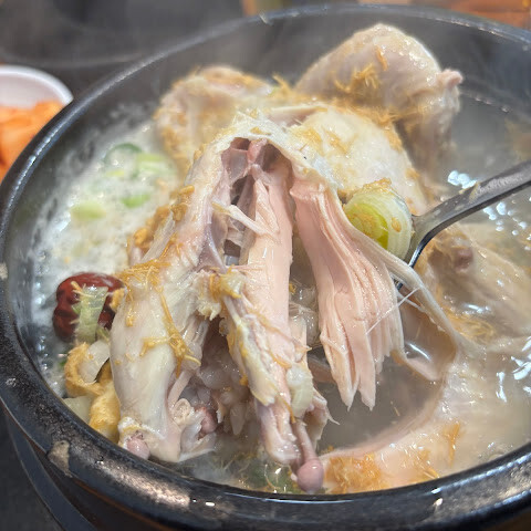 삼계탕이 정말 맛있어요. 국물은 정말 맛있지만 가벼워요. MSG나 다른 불필요한 첨가물을 넣지 않았다는 게 느껴져요. 닭고기는 정말 부드럽고 양념이 잘 된 찹쌀이 들어있어요.