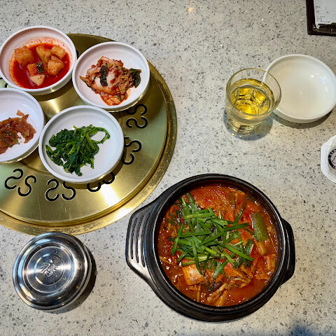 음식은 맛있었지만 가격이 비쌌습니다. 고기는 두 접시를 주문해야 하니 혼자 오시거나 친구와 한 접시를 나눠 먹고 싶다면 이 점 유의하세요. 가장 큰 실망은 서비스였습니다. 자리에 앉은 지 5분도 안 돼서 아주머니가 뭘 주문할지 물어보셨는데, 아직 메뉴판도 다 보지 못한 상태였습니다. 우리가 아직 결정을 못 내렸다고 짜증스러운 표정을 지으셨고, 식사 내내 짜증스럽고 조급한 기색을 보이셨습니다. 그런데 옆 테이블의 한국인 손님들에게는 훨씬 친절하셨습니다. 전반적으로, 더 나은 서비스를 받으면서 비슷한 음식을 먹을 수 있는 곳이 많습니다.