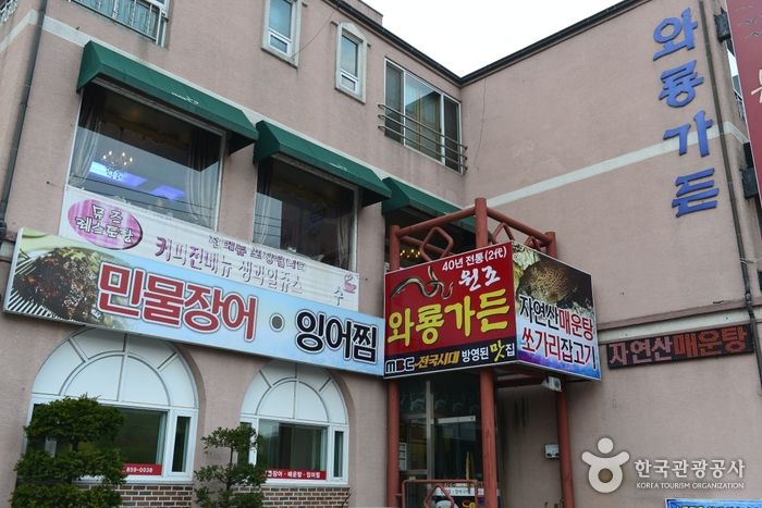 안동댐 내 인도교 주차장 옆에 위치하는 와룡가든은 안동댐 공사와 더불어 영업을 시작한 안동댐 원조 매운탕 (자연산 전문) 업소이다. 다양한 민물고기요리를 즐길 수 있다.
