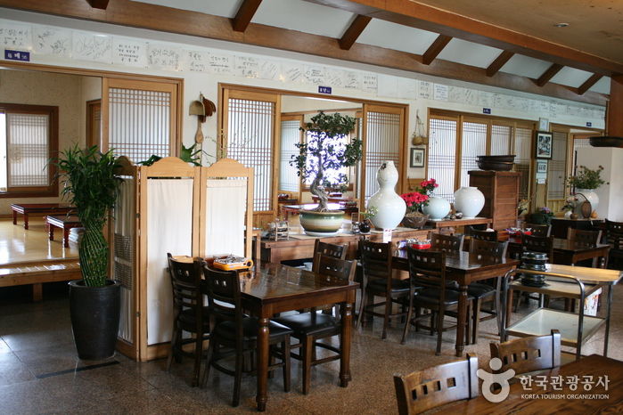 크고 깨끗한 한옥집에 전통 그대로의 실내 인테리어로 되어 있어 정말 제대로 된 한정식을 먹을 수 있다. 임금님표의 이천 쌀에 인삼과 각종 잡곡을 넣고 지은 영양밥과 25가지의 밑반찬, 그리고 구수한 된장찌개까지 다양한 생선조림이 나오는 쌀밥 정식과 정말 맛있는 게장을 맛볼 수 있는 게장정식 등 한정식의 진미을 맛볼 수 있는 곳이다.