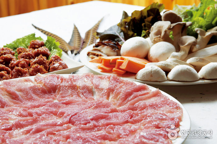 직접 사육한 꿩을 잡아 꿩뼈를 팔팔 끓인 육수에 살짝 데쳐먹는 꿩 샤부샤부의 맛을 본 사람들의 입소문으로 이곳은 장성의 새로운 명소가 되었다. 꿩고기 국물이 한껏 우러나면 거기에 국수나 떡살을 넣어 또 다른 맛을 느낄 수 있다. 꿩 육수로 만든 냉면과 메밀국수도 여름철에만 맛볼 수 있는 별미 중의 별미이다.