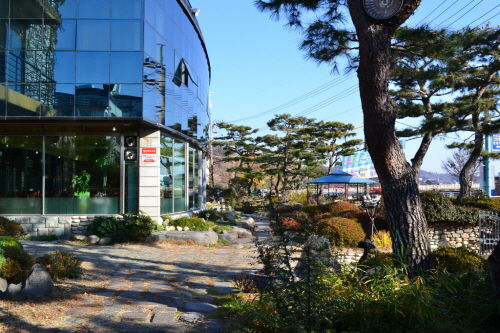 촉석루 후문에서 남강변 도로를 따라 올라가다 보면 천수교 맞은편 쪽에 위치한 The House 갑을은 잘 가꾸어진 정원과 남강이 바라다 보이는 아름다운 전망이 인상적이다.
