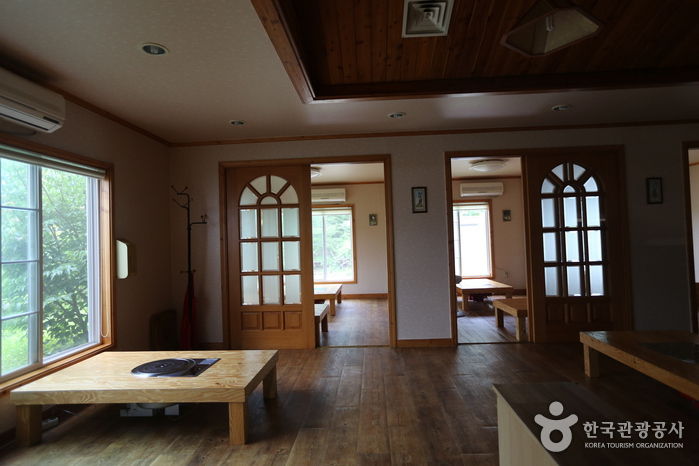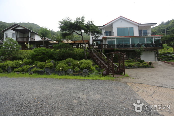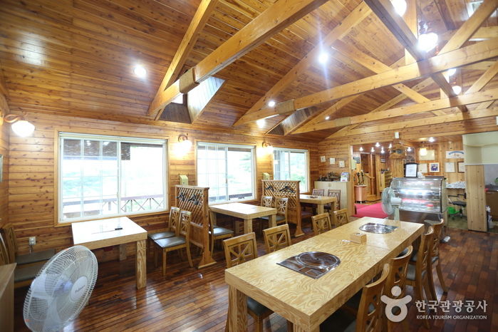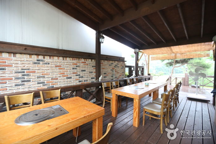 이월 저수지를 끼고 안성 방향으로 가다 보면 천룡 골프장 앞에 위치한 송백가든을 찾을 수 있다. 전원 카페를 연상하게 하는 예쁘고 현대적인 느낌의 하얀색 외관의 식당 건물이다. 진천군 쌀밥 집과 충북 모범업소로 지정된 음식점이다.