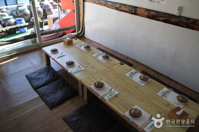 한국 전통미의 결을 그대로 살린 깔끔하고 소담한 분위기의 실내 장식으로 누런 한지에 맛깔스럽게 적힌 메뉴로는 된장 수육, 장 전골, 된장 황태찜, 된장 비빔밥, 된장 해물전 등 저마다 특색 있는 된장요리들이다.