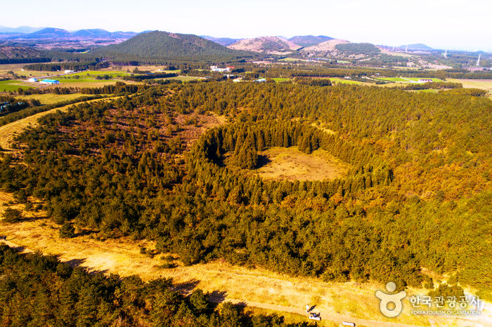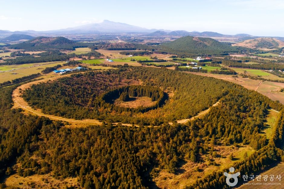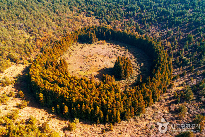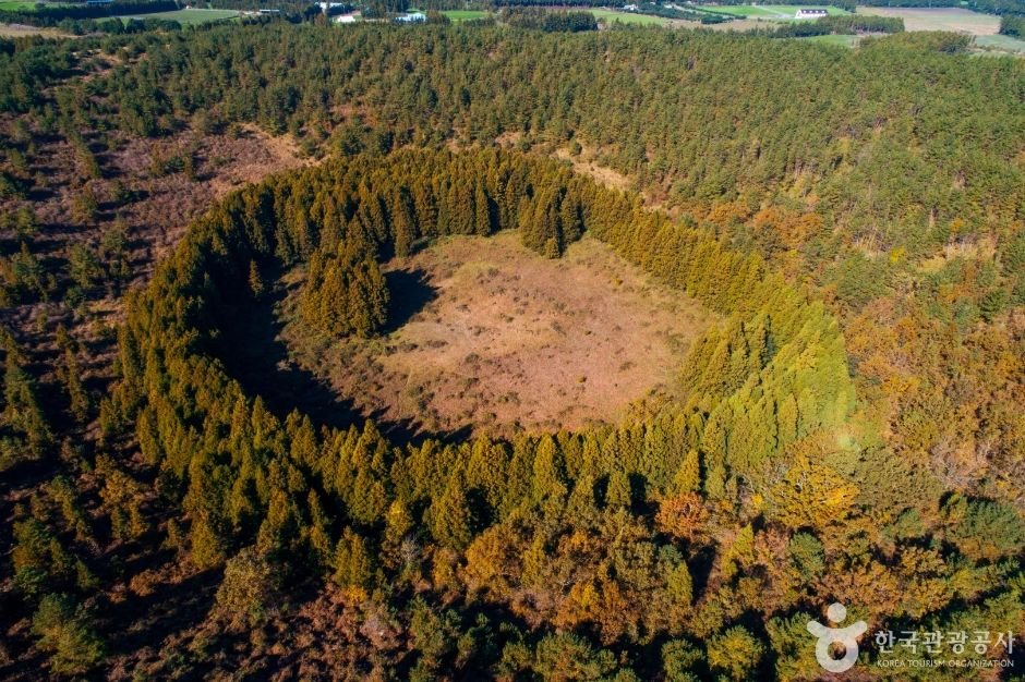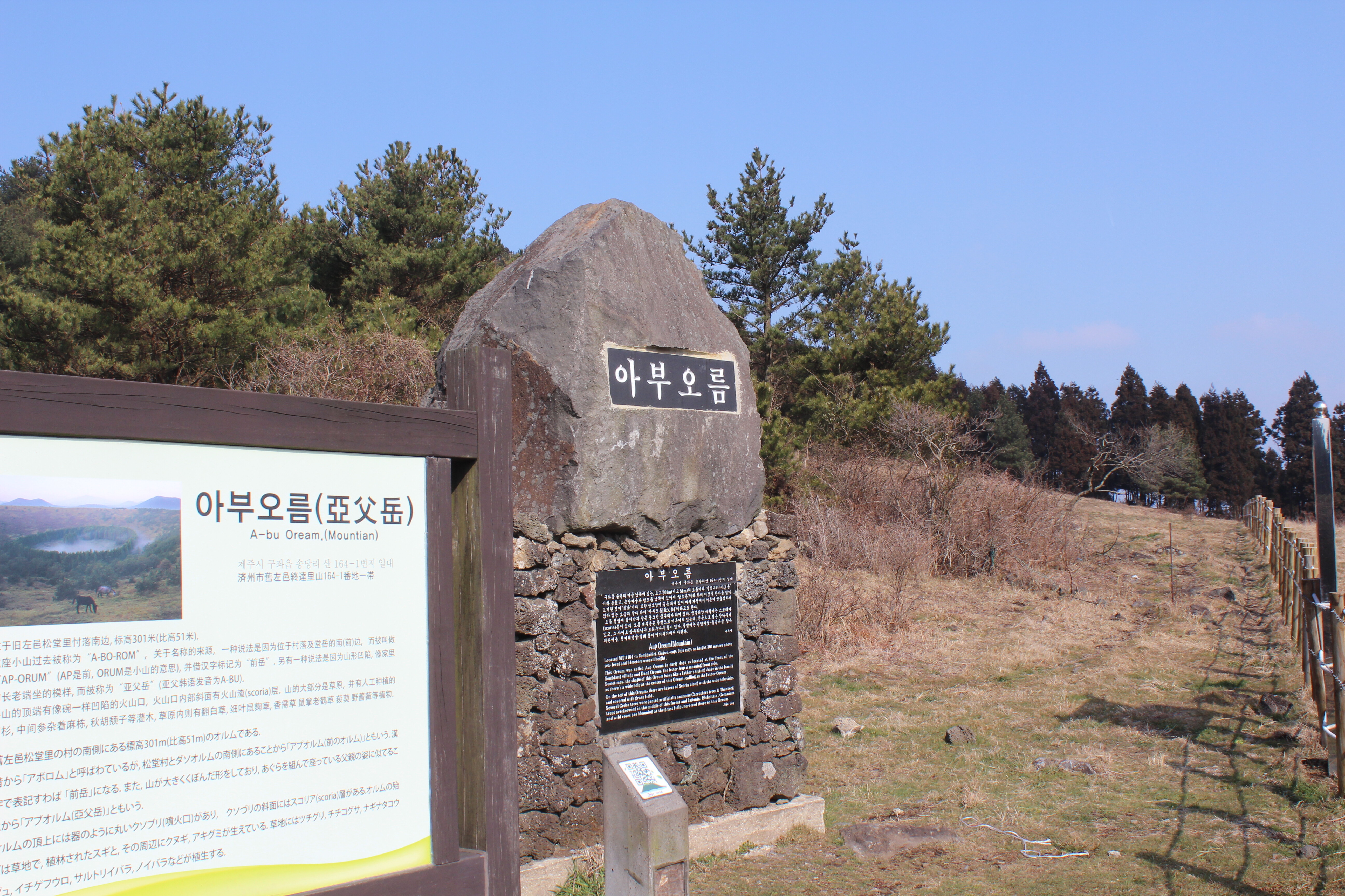어렵지 않게 오름 둘레까지 오를 수 있고 제주오름의 모습을 가깝게 느낄 수 있어 최근 각광 받고 있다. 오름 정상에 함지박과 같은 둥그런 굼부리가 파여있다. 특히 굼부리 안 원형 삼나무숲의 특징적인 모습이 주목 받고 있다. 이 오름은 바깥 둘레는 약 1400m, 바닥 둘레 500m, 화구 깊이 78m이며 전 사면이 완만한 경사를 이루고 있다. 화구 안사면의 중간 부분에서는 일부 자연 침식되어있어 스코리아층의 단면을 관찰할 수 있다. 오름 대부분은 풀밭으로 이루어져 있는데, 인공으로 심은 삼나무가 있고 그 사이로 상수리나무, 보리수나무 등이 있다. 풀밭에는 송양지꽃, 풀솜나물, 향유, 쥐손이풀, 청미래덩굴, 찔레 등이 여기저기 서식한다. 아부오름 주변에는 새미오름, 민오름, 백악이오름, 문석이오름 등 10여개가 넘는 오름이 둘러싸고 있다. * [유래] - 산모양이 믿음직한 것이 마치 가정에서 어른이 좌정해 있는 모습 같다하여 한자로는 亞父岳(아부악), 阿父岳(아부악)으로 표기하고 있고, 송당마을과 당오름의 앞(남쪽)에 있는 오름이라 하여 前岳(전악)이라고도 표기한다. 亞父(아부)란 아버지 다음으로 존경하는 사람, 阿父(아부)는 아버지의 뜻이라고 한다.