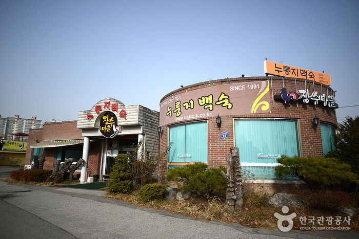 장수마을의 자랑인 누룽지 백숙은 담백하고 부드러운 맛이 일품이다. 특히 장수마을은 SBS맛기행 '그곳에가면', KBS '세상의아침' 등 매스컴에서도 극찬한 바 있는 건강식으로 인기가 있으며 멀리서도 찾아와 주시는 분들이 많을 정도로 이름난 맛집이다.