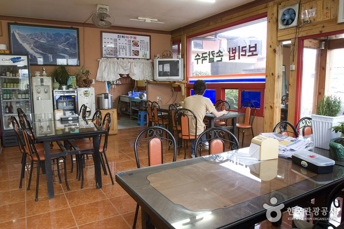 수심이 얕으며 백사장이 넓고 바닷물이 맑아 피서지로 적합한 진하해수욕장은 여름철에 많은 사람들이 찾는 명소다. 주변의 다른 식당들과 달리 통나무로 지어진 식당이다. 내부로 들어서면 넓은 대청마루와 전통 창호의 느낌을 주는 미닫이문이 있어 부드러운 나무의 느낌을 잘 느낄 수 있다. 신선한 재료를 사용해 만든 해물찜과 아귀찜 둘 다 맛이 좋다. 그 밖에도 보리밥과 손칼국수, 대구탕도 많은 사람들이 찾는 메뉴이다.