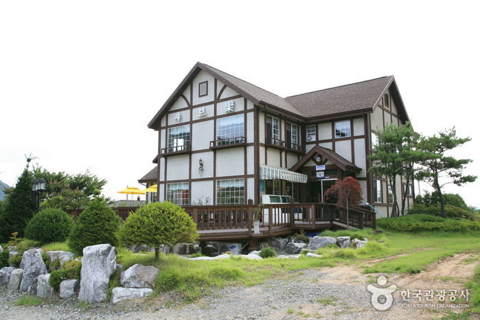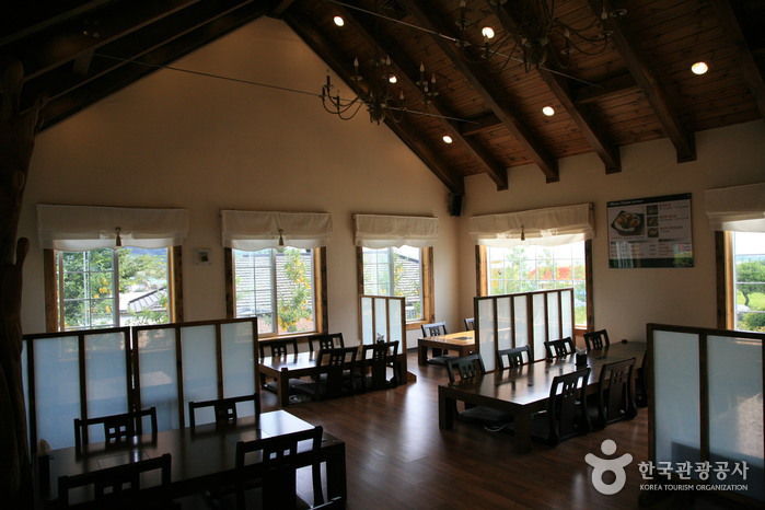 충주에서 새롭게 떠오르고 있는 안림동 음식거리 중앙에 자리 잡고 있다. 워낙 잘 지어진 목조건물이라서 금방 눈에 띄는 집이다. 충주시에서 지정한 아름다운 건축물에 선정되어 있다. 식당 옆쪽은 잔디가 깔려있고 앞에는 연못을 만들어 연못 위에 걸린 다리를 건너 식당으로 들어간다. 또한 식당 뒤쪽은 충주의 특산물인 사과나무를 심어놓고 이를 손님들에게 추첨을 거쳐 나눠주기도 한다.