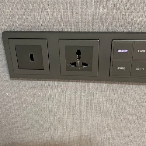 1. 콘센트가 없어서 매우 불편하고, 일반 콘센트는 충전 속도가 느리지만, 프런트 직원에게서 어댑터를 빌릴 수 있습니다.