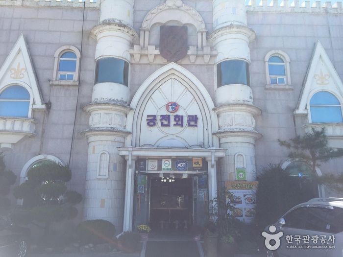 궁전회관에서 한정식을 주문하면 15가지 이상의 요리가 올라오는데, 그들의 고향이 ‘육해강산’이다. 홍어회, 전복, 해삼, 조기, 가오리 찜은 바다에서, 계란찜, 돼지수육 등은 육지에서, 더덕무침, 취나물은 산에서, 은어튀김 등은 강에서 온 것이다. 반찬 하나하나 남도 지방의 손맛이 느껴진다. 이보다 부담 없이 즐기고 싶다면 일반 백반이 있다. 가짓수 등은 차이가 나지만 그 야무진 손맛은 변함없다. 도회적인 디자인의 건물 외관과 내부 인테리어도 눈길을 끈다. 이름 그대로 동화 속의 거대한 성처럼 웅장하다. 건물에 두 개의 출입구가 있는데 오른 편으로는 궁전예식장이다. 곡성 버스터미널에서 도보로 10분 거리라 접근성이 좋다.