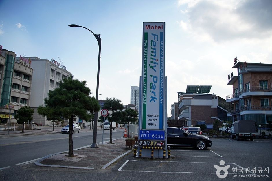 낙산 패밀리파크는 지상 3층 규모로 카페 같은 아늑한 분위기의 모텔이다. 현관 입구에는 늘 향긋한 원두커피향이 손님들을 맞이한다. 객실은 깔끔한 인테리어가 돋보이는 콘도식 원룸과 투룸으로 구성되어 있다.