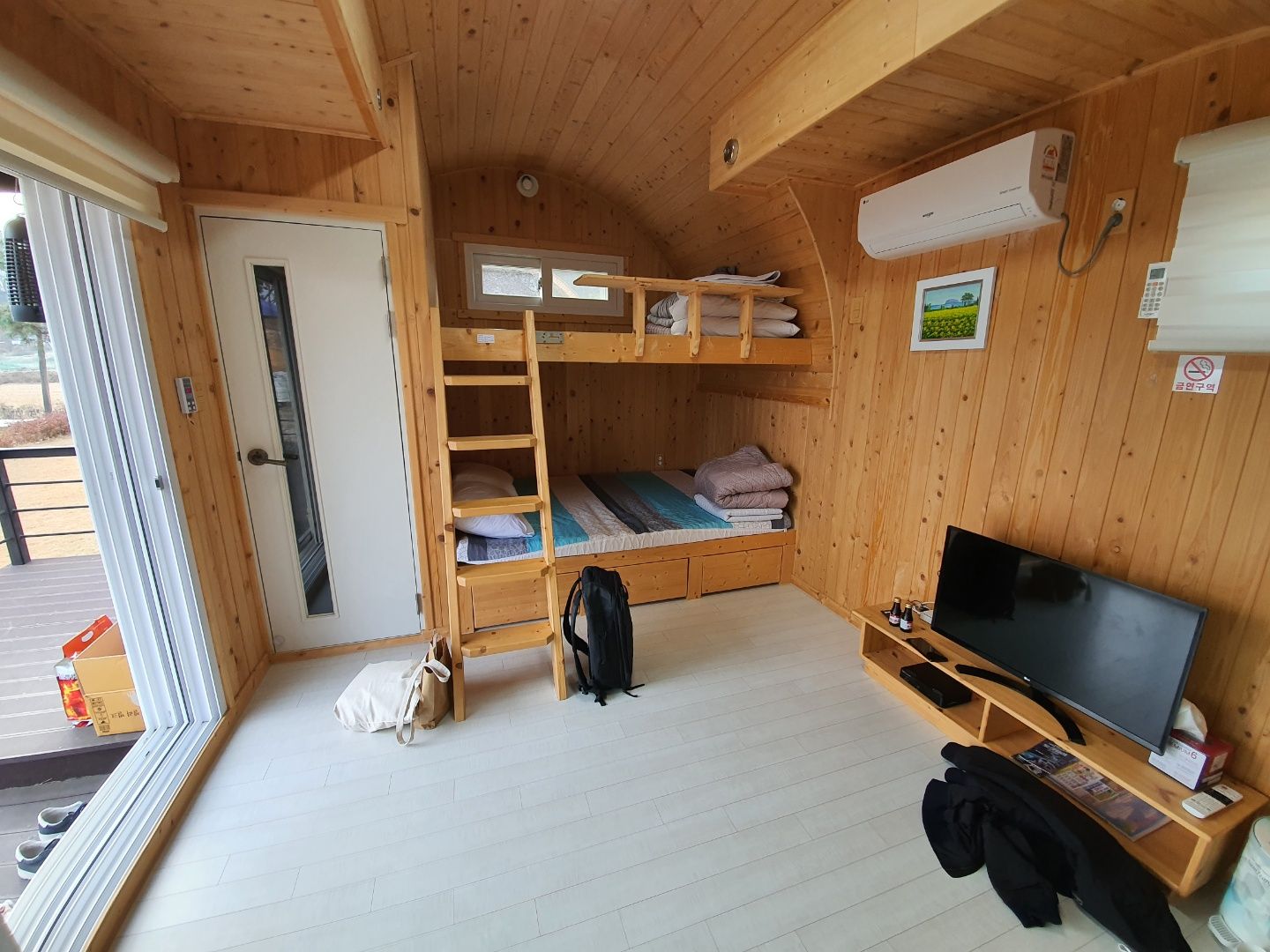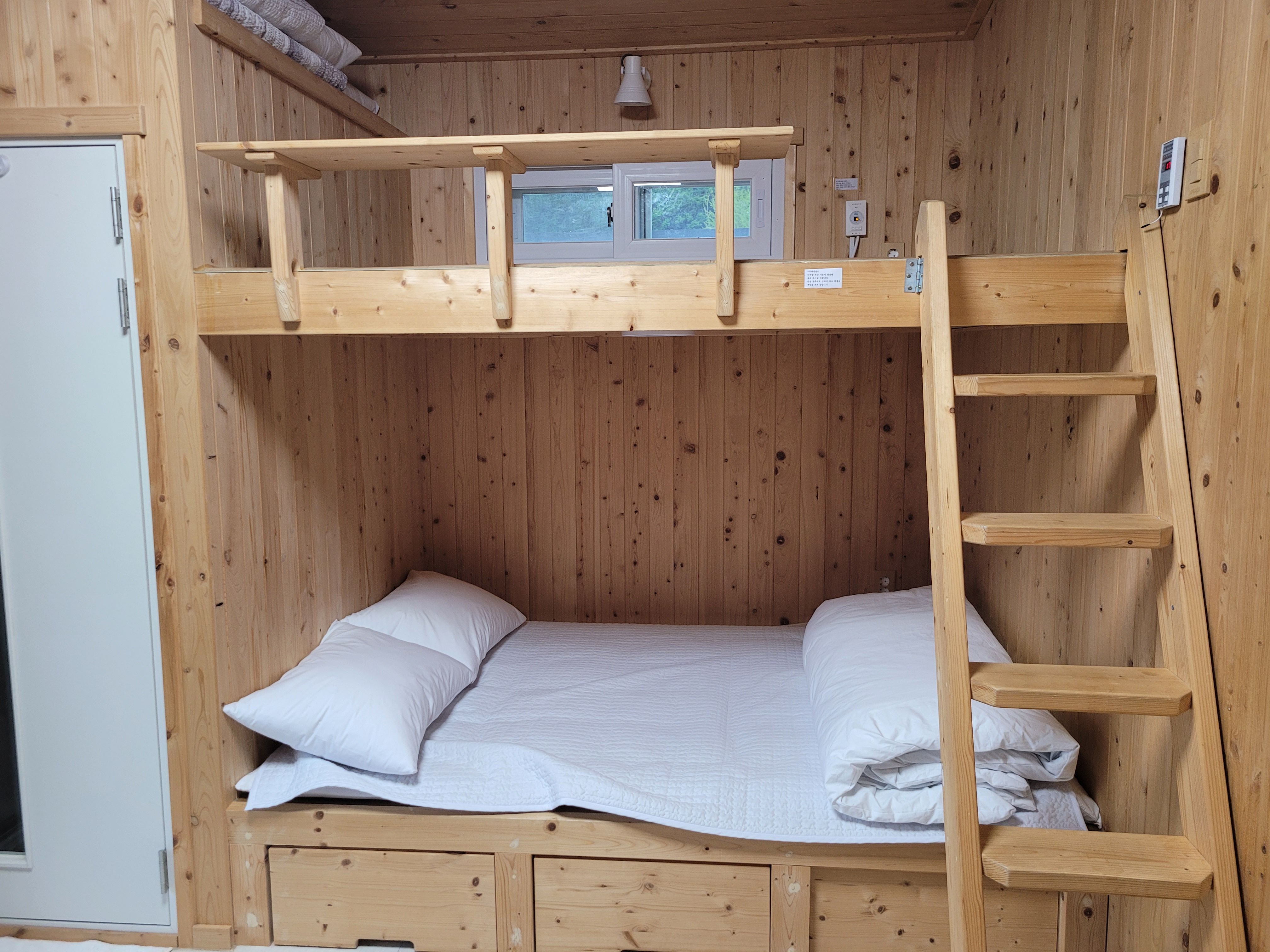 시설 내부는 깨끗한 편이에요. 2층 나무침대, 온통 나무로 되어있어서 너무 좋았어요~