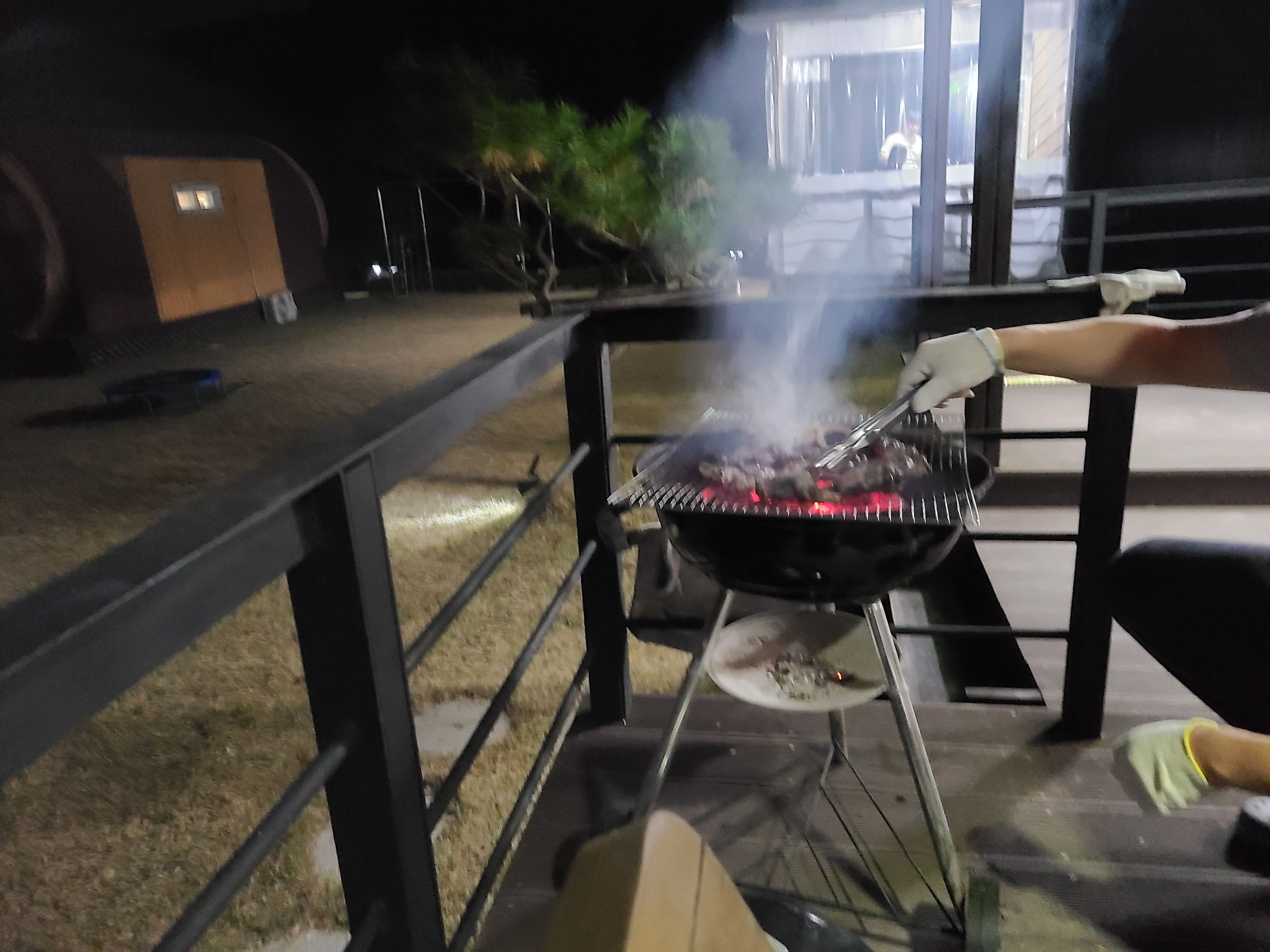 그리고, 바베큐 굽기 좋아요~ 밤에 날씨가 무척 쌀쌀했는데 하늘에는 별이 가득하고, 별자리 찾고 놀았네요. 마침 집에서 가져온 장작도 있어서 불멍 제대로 하고, 푹~ 잤어요.