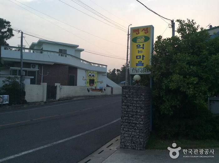 사람과 자연이 어울리는 곳 낭만의 섬 제주에 위치한 귤 익는 마을은 돌담과 감귤 과수원이 자연 그대로 어우러져 있어 마음을 편안하게 해 주고 넓은 잔디마당에 있는 야자수와 철쭉 등이 아기자기한 정원을 이루고 있다. 집의 외부는 서구식 스틸하우스로서 이국적이고 세련된 느낌을 주며 내부는 건강에 좋은 황토로 처리하여 따뜻한 느낌을 준다.