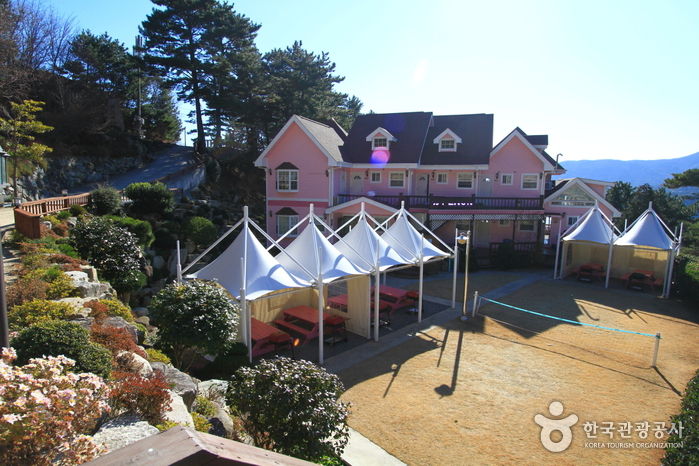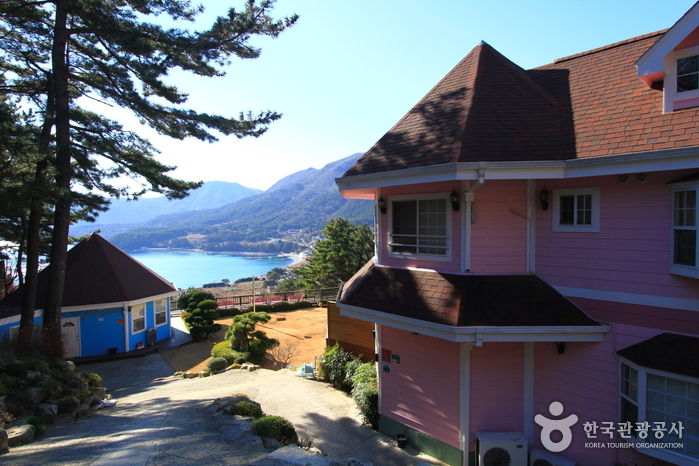 거제의 10대 명산인 북병산의 지맥이 흘러내려 앉은 곳 외도, 해금강이 눈앞에 보이는 망양마을 어귀, 자연이 살아있는 이곳에 팔색조와 같은 예쁜 집을 지어 이름을 팔색조라 하였다. 약 200평의 잔디마당, 연못, 그리고 족구, 배구, 베드민턴등 다양한 운동을 할 수 있도록 다목적 구장을 준비하였으며, 약 20평의 카페식 홀은 이벤트나 노래방으로 사용할 수 있도록 하였다.