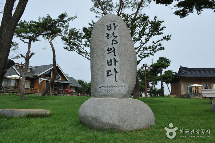바람의 바다 펜션은 홀통유원지내에 자리 잡고 있으며 지척에 홀통해수욕장과 드넓은 갯벌이 있다. 홀통유원지는 각종 해양스포츠를 즐길 수 있는 곳으로 바람이 좋아 윈드서핑의 최적지로 유명하고 홀통해수욕장은 울창한 해송과 넓고 긴 백사장이 장관을 이루는 것으로 여름 피서지로 각광을 받고 있으며 최근에는 날씨 좋은 봄 가을 뿐만 아니라 겨울바다의 낭만을 즐기는 사람들로 붐비고 있다.