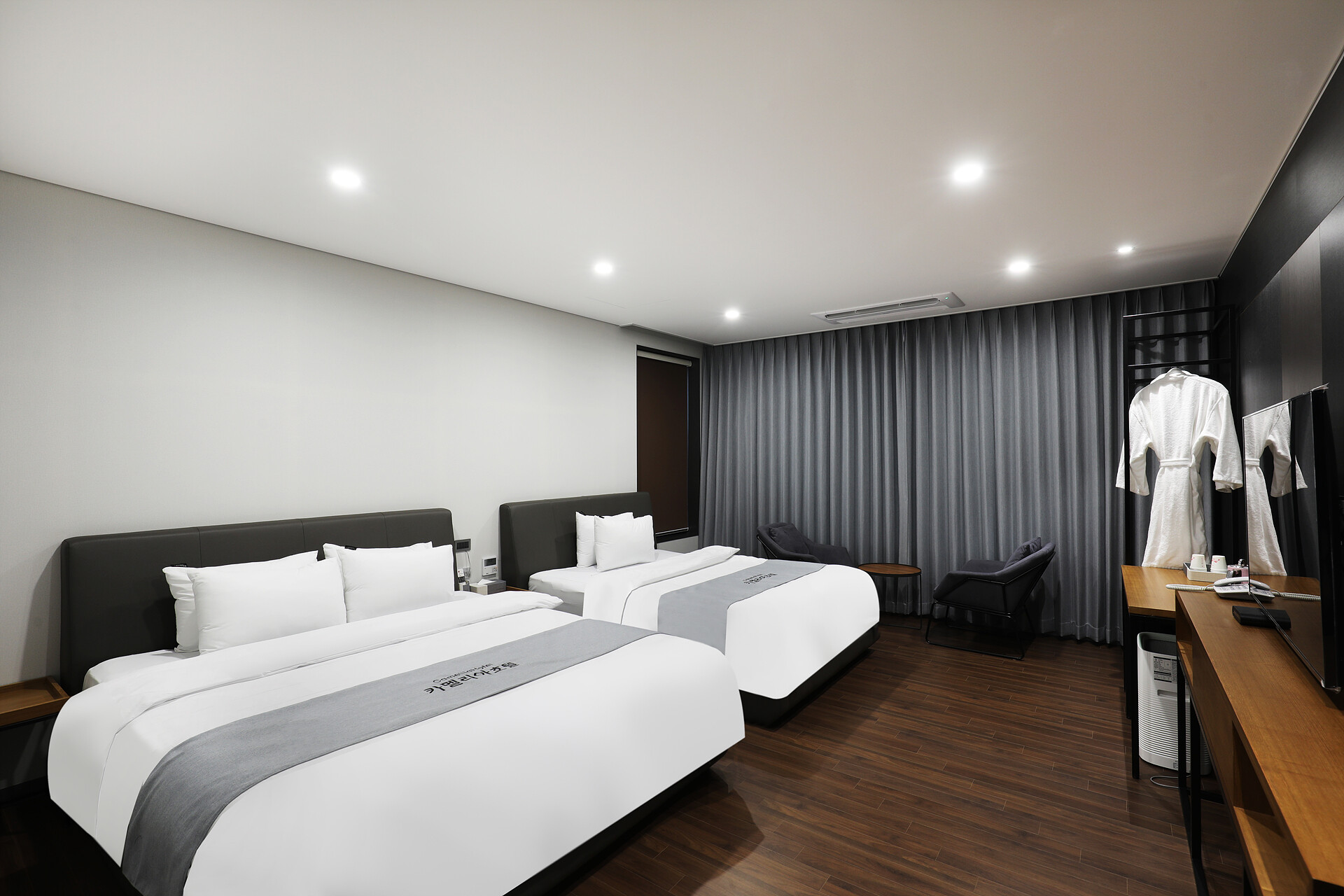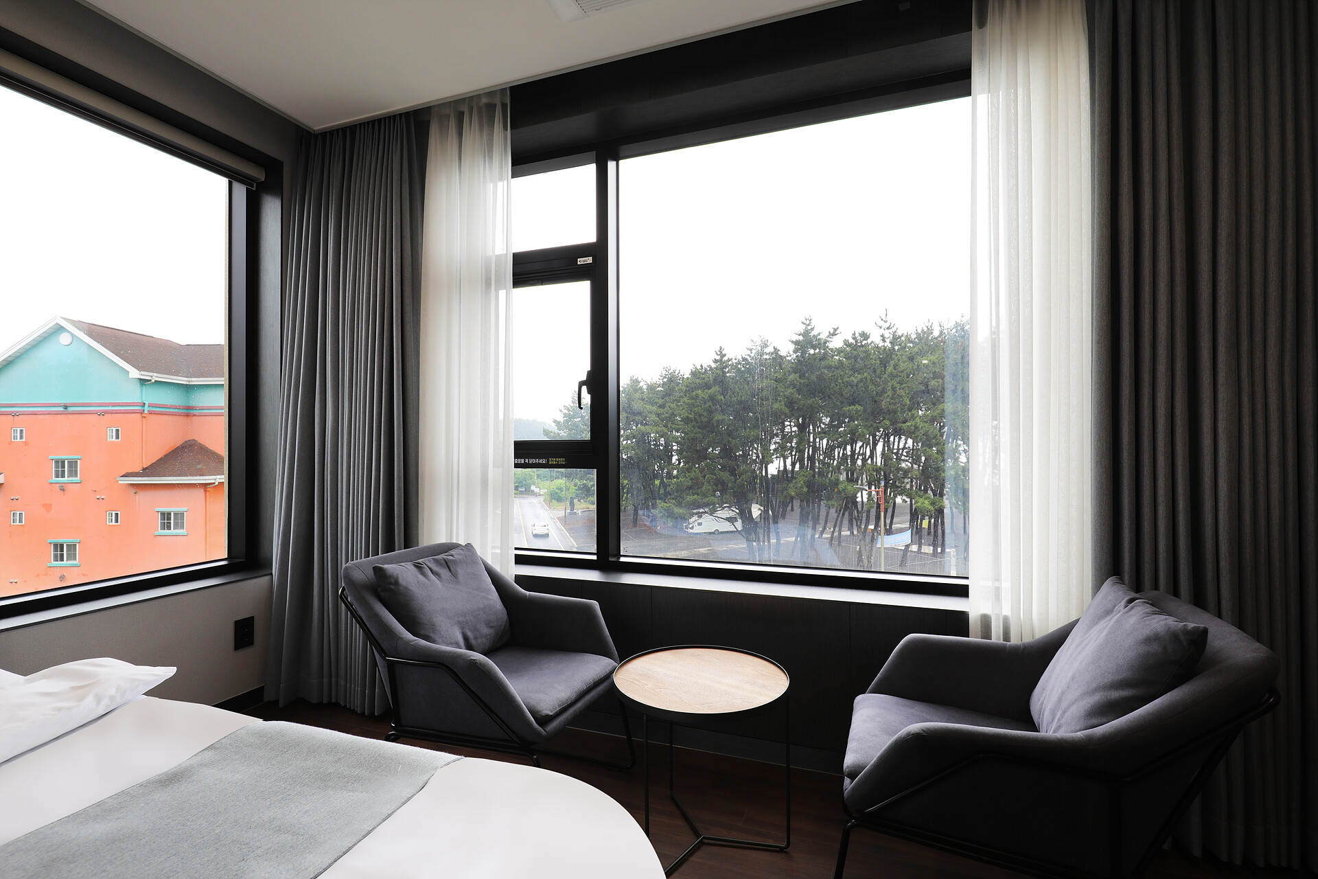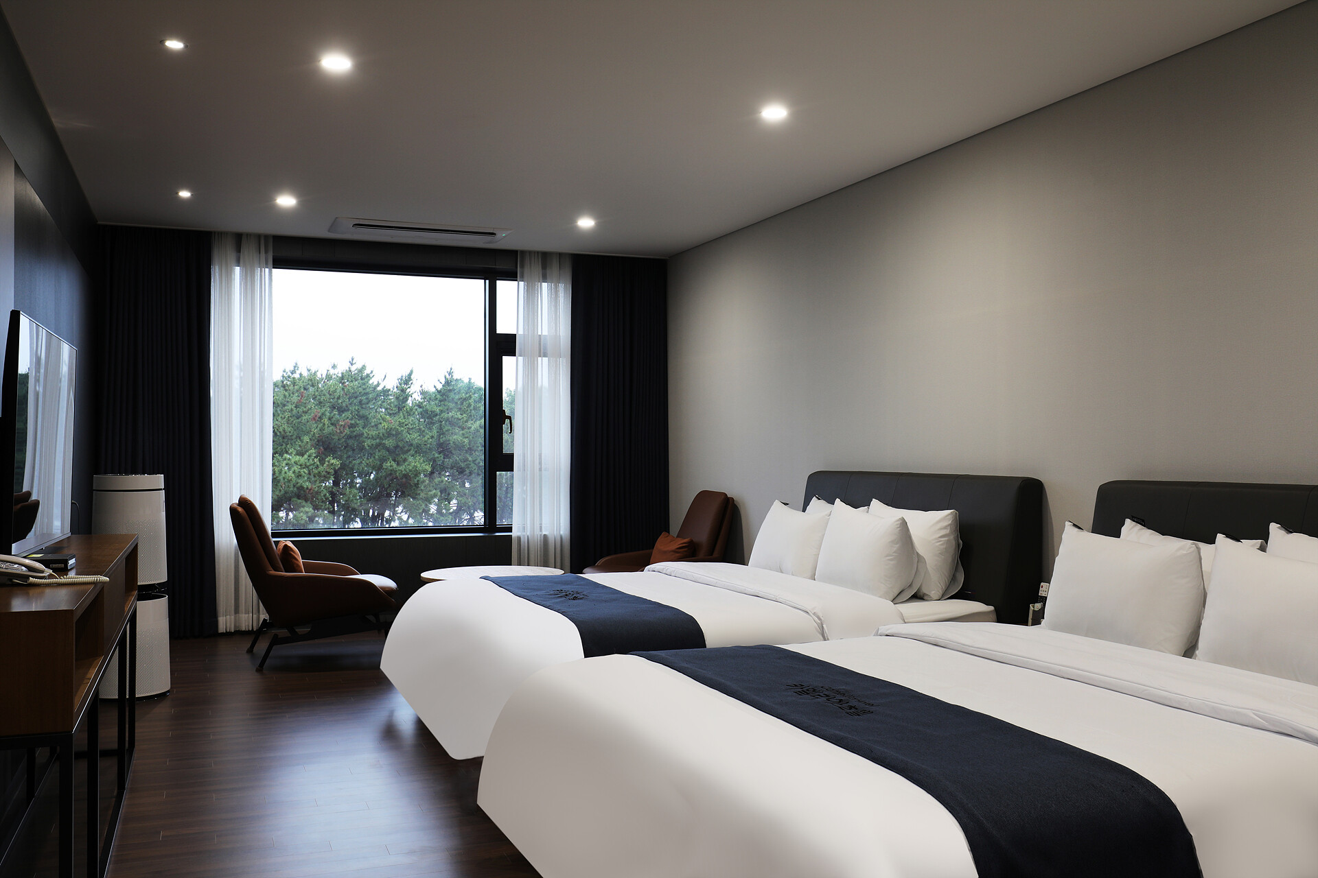 춘장대해수욕장에 위치한 바닷가모텔은 3층으로 된 건물이다. 입구에서부터 정문으로 길게 연결된 통나무 길이 아기자기하다. 객실은 깔끔하고 현대적으로 인테리어 되어 있으며, 깨끗한 욕실과 화장실, TV, 냉장고, 에어컨 등이 구비되어 있다. 바다와 가까워 언제든지 가볍게 해수욕을 즐길 수 있으며, 연인부터 가족단위까지 편안하고 안락하게 머물다 갈 수 있는 모텔이다.