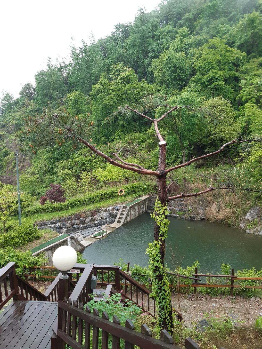 다음날 보니, 깊은 산속에 숙소가 있더라고요.ㅋ 산속에서 내려오는 물로 수영장을 만들어 놓았는데, 지금은 물고기가 살고 있어요 ㅋ