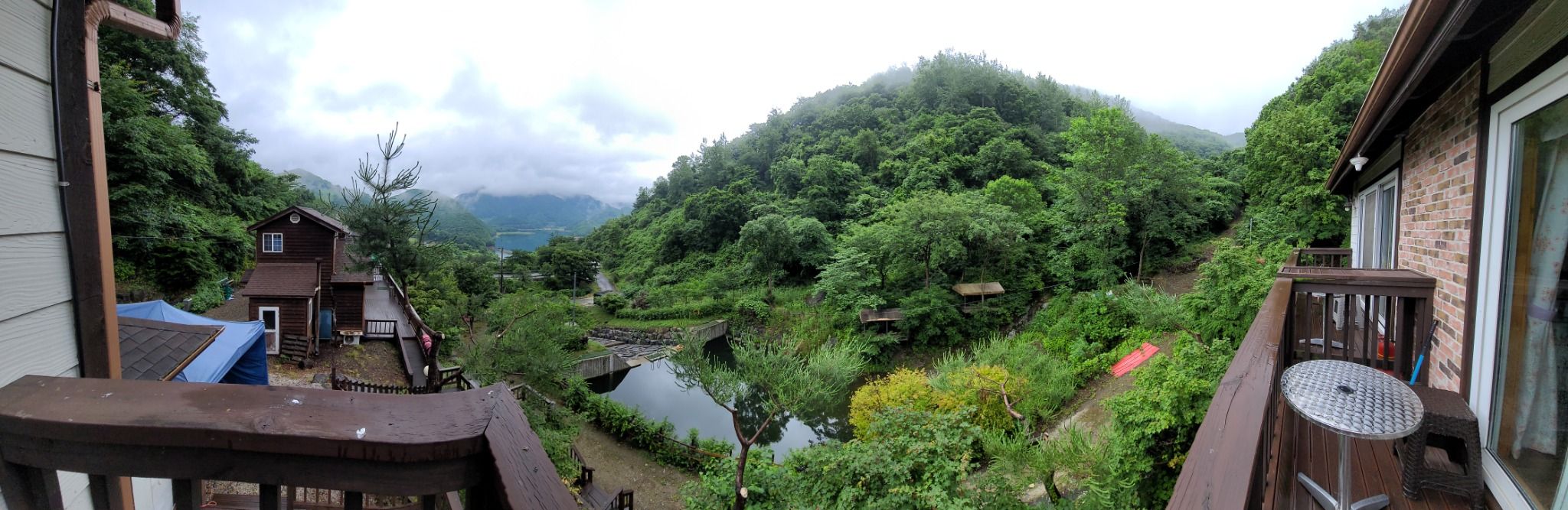 베란다문열면 계곡소리들리고 산이 가까워서 좋았어요 천장이 높아서 답답하지않습니다