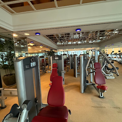 피트니스 센터, 수영장, 스파는 별관에 있으며, 지상 또는 지하 통로를 통해 접근할 수 있습니다. 피트니스 센터에는 운동복과 양말이 제공되며, 시설이 매우 잘 갖춰져 있습니다. 런닝머신, 고정식 자전거, 케이블 머신, 전신 운동 기구, 스미스 머신, 프리 웨이트, 요가/스트레칭 공간, 골프 시뮬레이션 공간, 온수 욕조/사우나, 그리고 넓은 수영장까지 있습니다. 정말 최고이고 관리가 아주 잘 되어 있습니다. 무료로 이용할 수 있는 마사지 의자도 두 개나 있습니다.