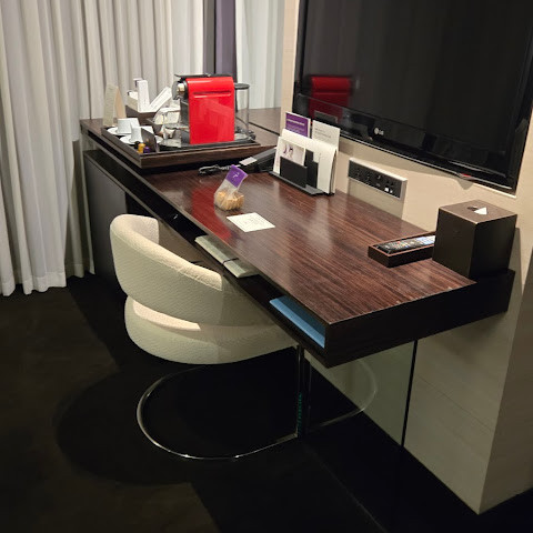 호텔 음식은 훌륭했습니다. 제가 먹어본 모든 음식이 맛있었어요. 하지만 몇 가지 아쉬운 점이 있었습니다. 객실은 매우 깨끗했지만 너무 작았습니다. 제가 묵어본 호텔 객실 중 가장 작았던 것 같습니다! 인구 밀도가 높은 도시에서 공간이 얼마나 중요한지 모릅니다. 또 다른 단점은 이른 아침 커피를 마실 수 있는 옵션이 없다는 것이었습니다. 로비 카페는 오전 10시 이후에야 문을 열고, 호텔에서는 무료 커피를 제공하지 않습니다.