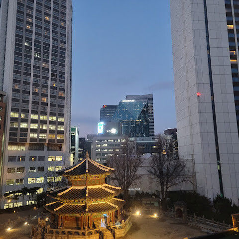 위치는 서울 중심부, 시청역 바로 옆이며, 호텔 내에 사찰과 기타 유적지가 있습니다.