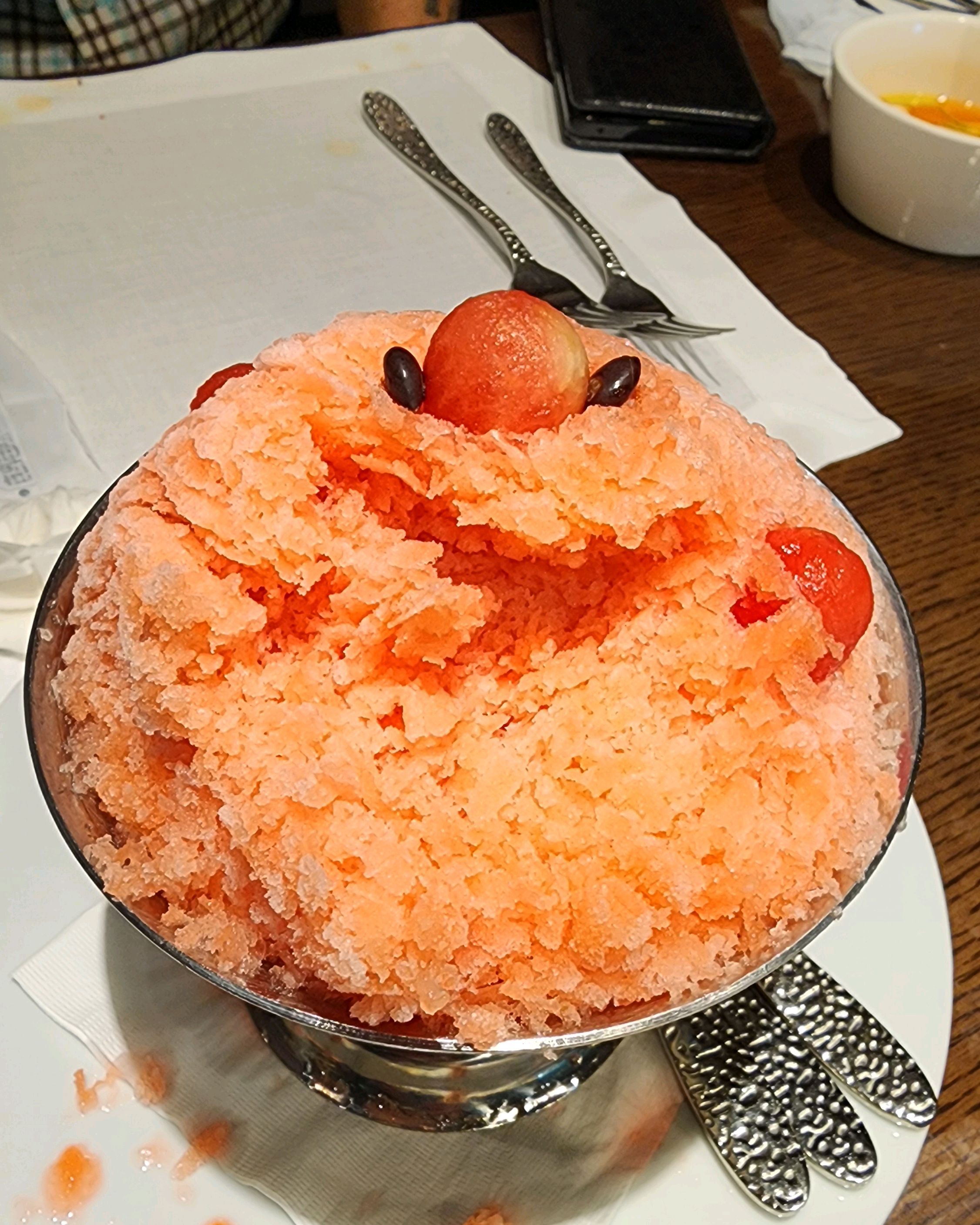 3월에 다녀오고 3개월만에 갓눈데 서비스내용이 좀 바뀌어서 더좋앗다 가격이 올르고 더더 받는느낌 !!!어니언스프도 달앗고 웰컴드링크는 더달고 ㅋㅋ수박빙수눈 완전 달아 쓰러짐 ㅋㅋ