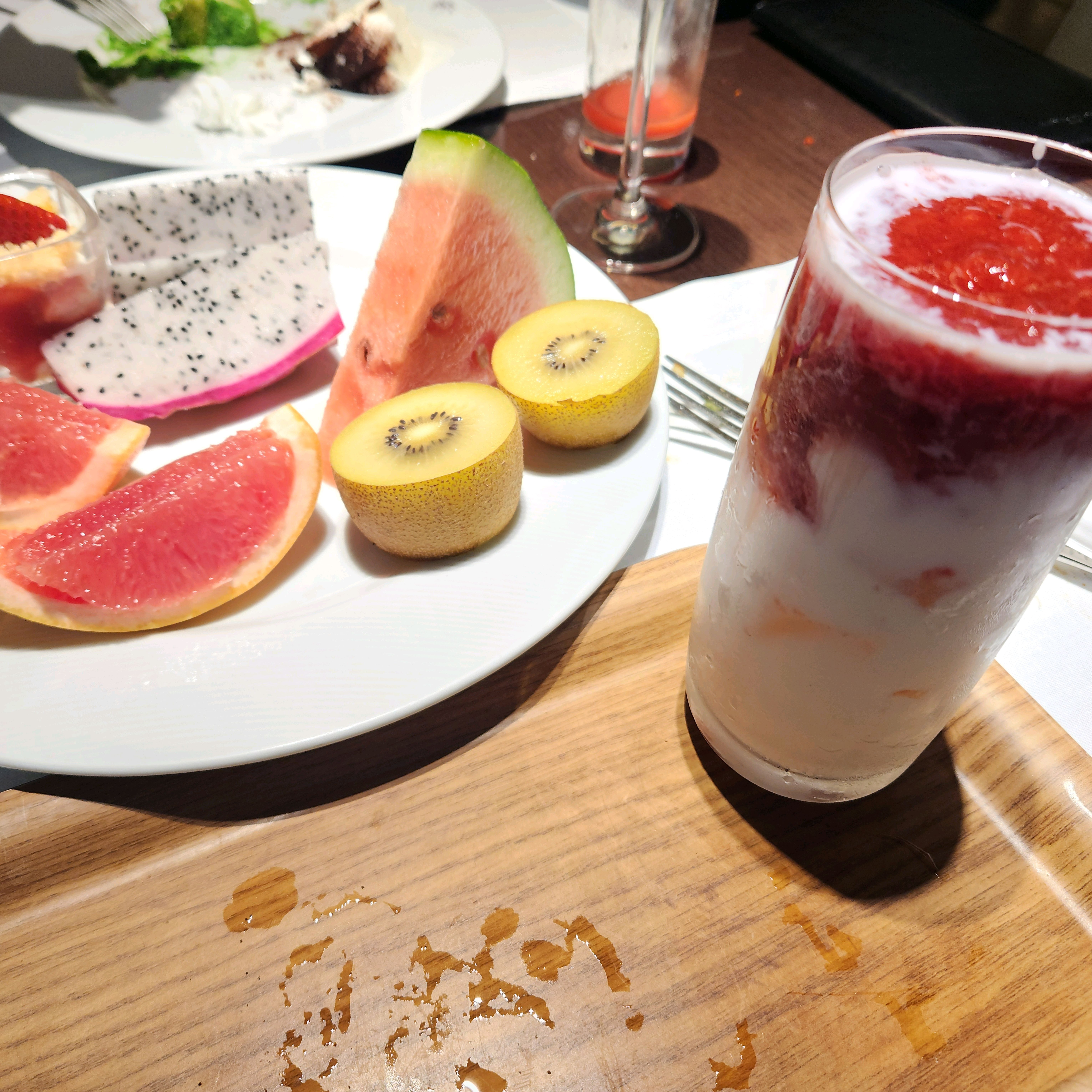 숙박은 안하고 뷔페 아리아 이용했어요~가격은 인당₩165000원.. 음식종류가 많고 전반적으로 맛은 괜찮아요~ 근데 랍스터는 퍽퍽해서 생각만큼 맛있지 않았구요...케익은 생크림케익만 먹어보았는데 부드럽지 않았어요ㅜ 의외로 맛있었던건 김치였어요~ 배추김치랑 무김치가 사오고 싶을만큼 맛있어서 검색해보니 옆쪽에 김치파는거 같았어요^^