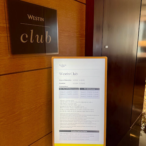 매일 아침 이그제큐티브 라운지에서 제공되는 조식은 맛있었습니다. 조식은 양이 많지는 않았지만 수프, 페이스트리, 김치, 계란, 콜드컷 등 다양한 메뉴가 알차게 준비되어 있었습니다. 직원들은 바쁜 주말을 제외하고는 저희가 선호하는 자리를 예약해 주는 경우가 많았습니다. 저희는 보통 외출 중이어서 저녁 라운지는 이용해 보지 못했습니다.