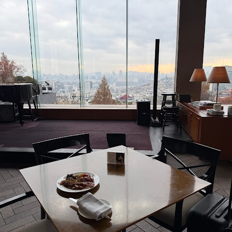 이번에는 남산서울타워가 보이는 방에 묵었어요. 객실은 넓고 편안했고, 아침 식사는 맛있었습니다.