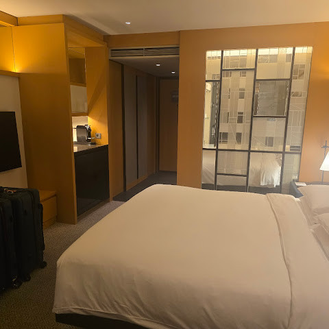 객실은 화려하고 멋지게 꾸며져 있습니다. 맞은편에 있는 인터컨티넨탈에 비하면 꽤 프라이빗한 공간입니다. 객실은 약간 안쪽에 위치해 있고, 처음 방문했을 때는 다소 복잡할 수 있습니다. 로비가 24층에 있고, 객실은 다른 엘리베이터를 타고 내려가야 하기 때문입니다.