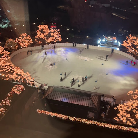 746호실에서 아이스링크가 내려다보이는 멋진 전망을 즐겼습니다. 입장권 2장을 받아 사진도 찍었지만 스케이트는 타지 않았습니다. 직원분들 모두 친절했습니다.