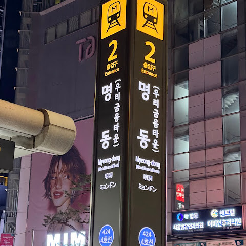 • 지하철 2번 출구: 사진에서 보시다시피, 호텔은 지하철 4호선 명동역 2번 출구 바로 옆에 있습니다. 무거운 짐을 끌고 이동해야 할 경우에도 에스컬레이터와 엘리베이터를 이용할 수 있어 편리합니다.