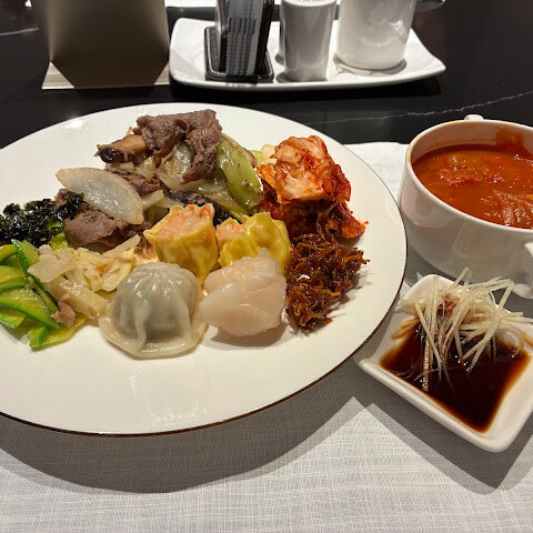 아침 식사 뷔페는 다양한 한국 요리가 있었고 모두 맛있었습니다. 대접이었습니다.