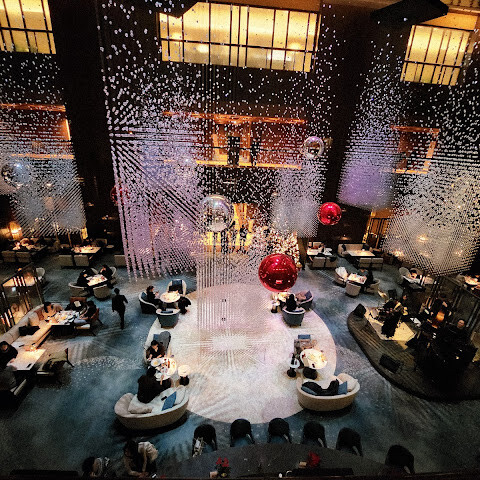 별빛이 쏟아지는 것 같은... 아주 멋있는 설치작품을 볼 수 있는 호텔입니다. 아쉽운 점은 주변에 가벽이 설치되어 있어서 저 멋진 작품을 감상할 때 시선에 방해가 됩니다. 작품은 더 많은 사람들과 공유 되었을 때 더욱 빛을 바랄 것 같습니다.