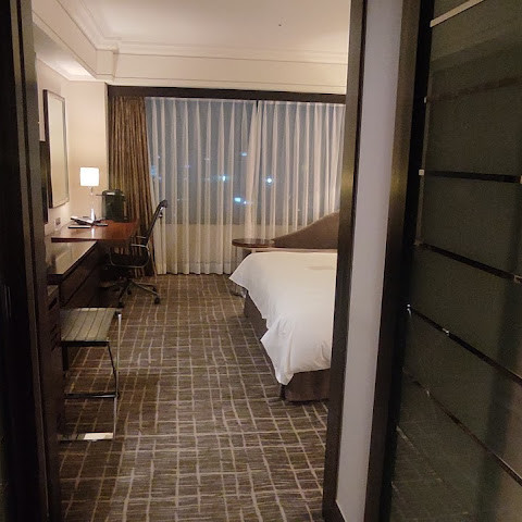 호텔은 예약이 꽉 차서 체크인할 때 저희가 예약한 "프리미어 룸"이 없었습니다. 프런트 데스크에서는 다른 객실로 "업그레이드"해 주었다고 했습니다. 하지만 "업그레이드된 객실"은 제가 예약한 객실의 온라인 사진과는 전혀 달랐습니다. 욕실은 오래되었고, 세면대는 너무 낮아서 허벅지 높이까지 내려갔습니다. 아마도 호텔에서 장애인 편의시설이 있는 객실을 "업그레이드"해 준 것 같습니다. 제가 지불한 금액에 비해 제가 받은 객실은 업그레이드가 아니라 대폭 다운그레이드된 것처럼 느껴졌습니다. 독립형 샤워 시설은 없었고, 욕실에는 샤워/욕조가 결합된 오래된 객실이 있었습니다. 설상가상으로 욕실 슬라이딩 도어가 완전히 닫히지 않아 틈이 크게 벌어져 사생활이 침해되었습니다. 객실에서 유일하게 좋았던 점은 멋진 도시 전망이었습니다.