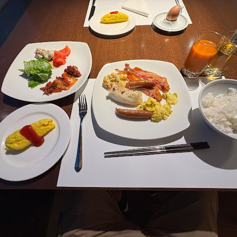 서비스는 효율적이고 친절했고, 조식은 세계 각국의 요리와 한식 메뉴가 다양하게 준비되어 있었어요.