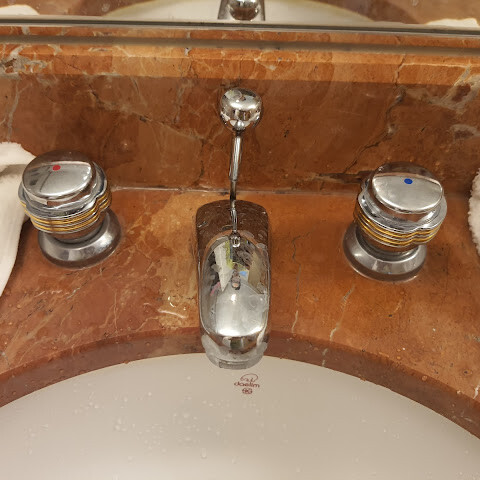 욕실 세면대 수전을 좀 더 현대적인 것으로 교체하면 더 편리하게 이용할 수 있을 것 같습니다.