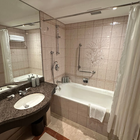 저희는 고층 객실에 묵었는데, 엘리베이터가 효율적으로 잘 되어 있어서 대기 시간이 짧았습니다! 👍🏻 객실은 넓었습니다. 29인치 캐리어 두 개와 기내용 캐리어 두 개를 모두 펼칠 수 있었습니다. 다만 조명이 좀 어둡고 세면대 수압이 약했습니다.