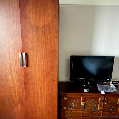 방은 넓지만 약간 오래된 느낌이고, 매트리스는 편안합니다. 다만 현관 센서등이 너무 민감해서 자는 동안 켜졌다 꺼졌다 해서 꽤 불편했습니다.