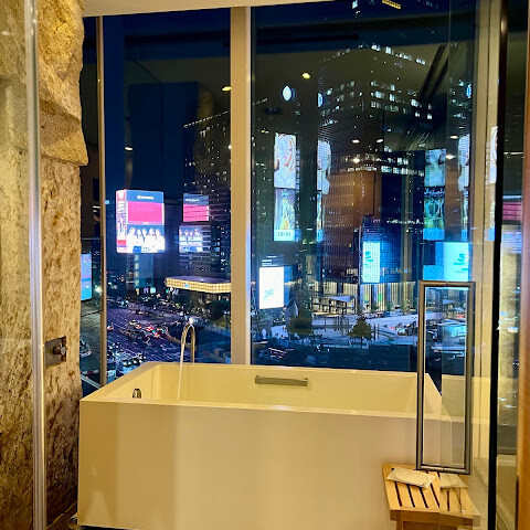 한국에 처음 갔을 때 이곳에 묵었습니다. 도착하자마자 직원들이 바로 반겨주었습니다. 모두가 미소로 맞이해 주고 매우 친절했습니다. 객실은 넓고 부드러운 린넨으로 되어 있었습니다. 온도 조절이 약간 늦었지만 직원들이 매일 담요를 추가로 제공해 주었습니다. 샤워실은 매우 뜨거웠고, 열선 시트와 비데가 있는 변기는 최고였습니다. 편의시설은 괜찮았지만 금방 꽉 찼습니다. 제 일정에 맞는 마사지를 받기 위해 시간을 찾기가 어려웠지만, 호텔 밖에 있는 멋진 스파(플로우 스파)를 찾을 수 있었습니다. 호텔은 코엑스몰에서 몇 블록 떨어져 있어서 쇼핑과 식사를 하기에 매우 편리했습니다. 저희 객실에는 조식이 포함되어 있어 편리했고, 룸서비스를 선택한 날은 빠르게 제공되었습니다. 제가 유일하게 불편했던 점은 엘리베이터 시스템입니다. 23층이나 24층까지 올라가서 다시 엘리베이터를 타고 객실 층으로 내려가야 합니다. 익숙해지긴 하지만, 실제로는 말이 안 됩니다. 분명히 건축학적 결함입니다. 그렇지 않다면 서울을 방문할 때 꼭 이곳에 묵는 것을 추천하고 싶습니다. 강남의 중심부에 위치해 있거든요.