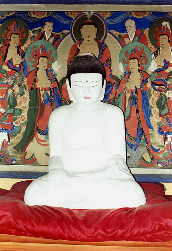 괴산군 사리면의 보광사 뒤쪽 봉학사지에서 발견된 석조좌불상이다. 1935년부터 보광사 대웅전에 봉안하여 본존불로 모시고 있는데 이 불상은 불두와 왼쪽 팔목 등을 보수하였으나 보수 부분을 제외하면 보존 상태가 좋은 편이다. 불상의 옷은 왼쪽 어깨만을 감싸고 있으며 오른 손바닥을 무릎에 대고 손끝이 아래를 가리키고, 왼손은 손바닥을 위로 향하게 하여 배꼽 앞에 놓은 모습이다. 불상의 높이는 95cm로 왼발을 오른쪽 허벅지 위에 올려놓은 항마좌는 그 예가 드문 편이다. 불두는 나발의 머리에 높은 육계가 있고, 신체에 비해서 큰 얼굴을 약간 숙이고 있는 상호는 원만하다. 굴곡이 없는 사각형에 가까운 상체에 띠주름 같은 삼도표현, 둔감한 옷주름선 등에서 전체적으로 입체감이 부족한 모양새가 조선시대에 조성된 것으로 추정된다. 보광산 뒤편 봉학사지에는 5층 석탑이 남아 있다.